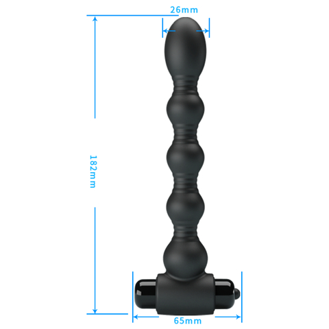 Откройте новые грани анальных ощущений с этим анальным стимулятором, оснащённым 10 функциями вибрации. Благодаря плавному силиконовому покрытию и постепенному увеличению диаметра шариков, игрушка подойдёт как новичкам, так и опытным любителям анальной стимуляции. Общая длина: 182 мм, Диаметры шариков до 26 мм.