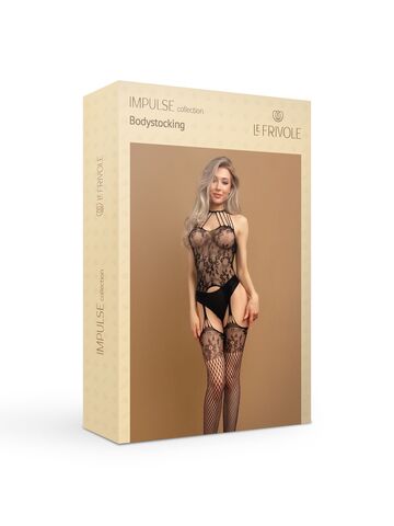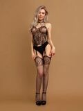 БОДИ-КОМБИНЕЗОН ЧЕРНЫЙ С КРУЖЕВОМ И ИМИТАЦИЕЙ ЧУЛОК (IMPULSE), размер S/XXL, арт. 06733