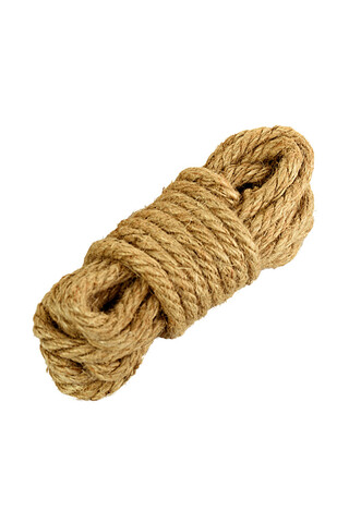 Джут - исторически "правильный" материал для изготовления бондажных веревок. Такая веревка немного колючая, и это дает дополнительную стимуляцию связываемому. Отрезок 5 метров можно использовать для обвязки отдельных частей тела или в комплекте с другими отрезками.