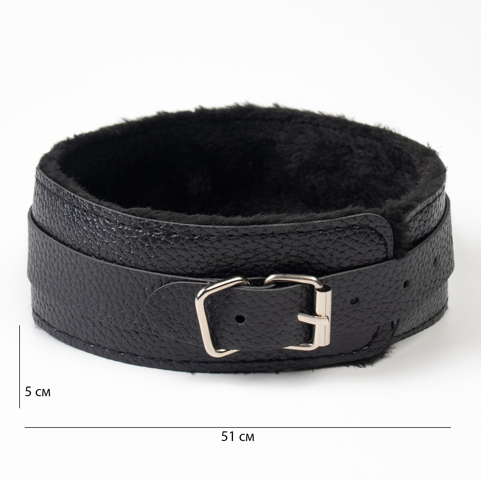 БДСМ набор выполнен из эко-кожи с искусственным мехом. Все ремни имеют систему регулировки. В состав набора входят 11 предметов: наручники, оковы, кляп, ошейник, поводок, верёвка, маска, зажимы для сосков, плеть, крестовина, пуховка.