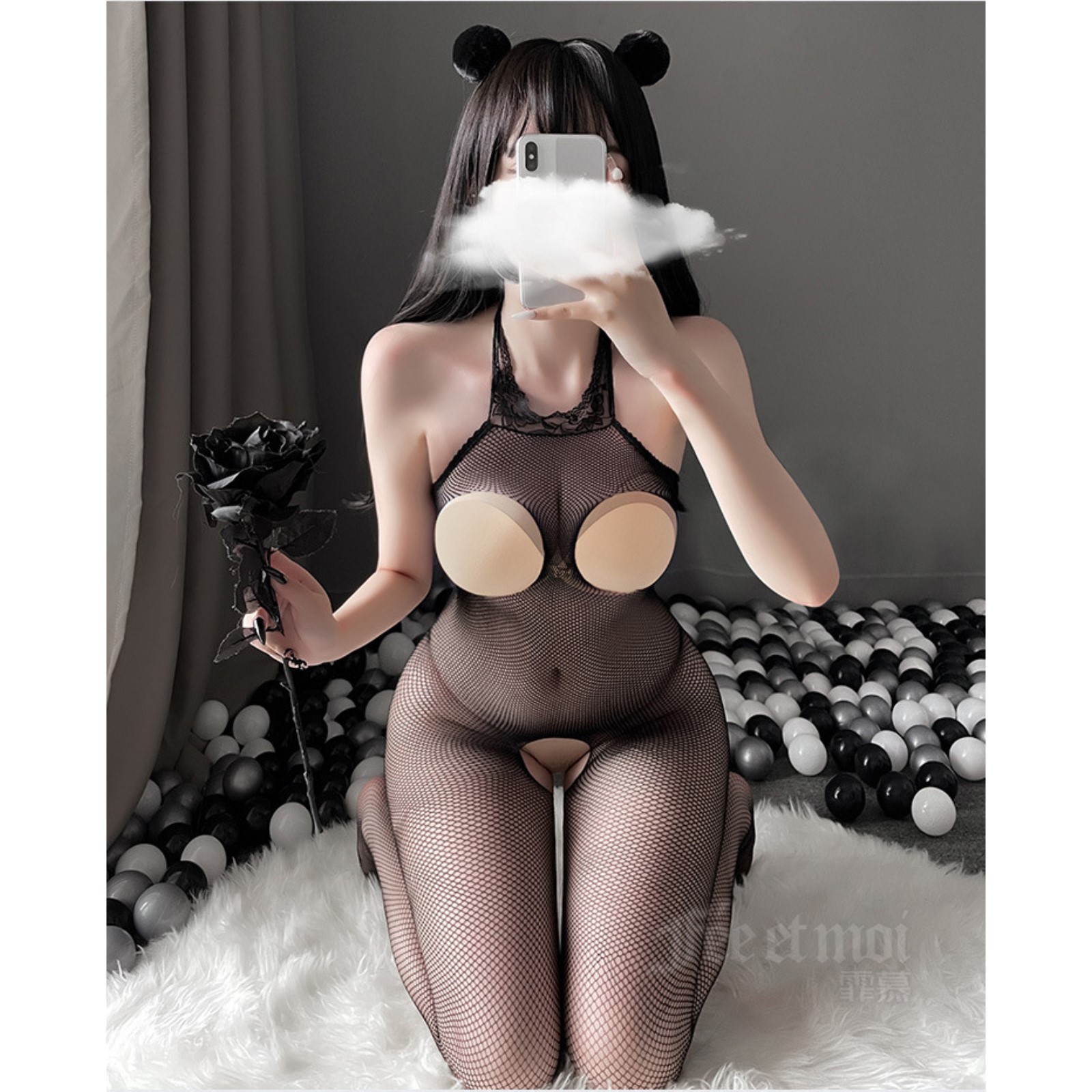 Комбинезон выполнен из эластичной сетки. Изящно подчёркивает силуэт, обеспечит идеальную посадку по фигуре. Эротические вырезы на груди и снизу позволят с лёгкостью стимулировать эти зоны, без необходимости снимать комбинезон.