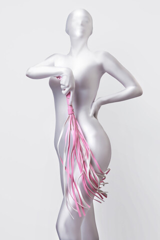 Оптимальный размер, эстетика и функционал – далеко не все достоинства этого изящного девайса. Ручка украшена стразами, мерцает и создает блики, удобно лежит в руке. Гладкие хвосты рабочей части плети выполнены из мягкой розовой PU кожи. Петля с металлическим кольцом служит для более удобного захвата.