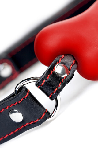 Силиконовый кляп-трензель на ремешке из PU-кожи достаточно большой, чтобы лишить возможности разговаривать. Но мягкий материал комфортно прикусывать без вреда для зубов. Ремешок с большим количеством отверстий подходит для любого объема головы.