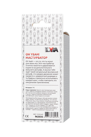 Oh Yeah! - это то, что ты искал для своих игр. Этот мастурбатор отлично ложится и удерживается в руке из-за дополнительного внешнего рельефа. А внутри тебя ждет такой натуральный внутренний рельеф, что каждое движение может привести к невероятной разрядке и ты будешь стремиться использовать каждый шанс, чтобы повторить это сексуальное приключение.