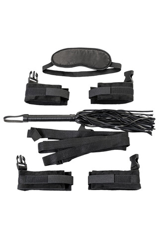 Набор бондажный TOYFA Theatre: ремни(4шт) + плетка + наручники + оковы + маска, текстиль, чёрный