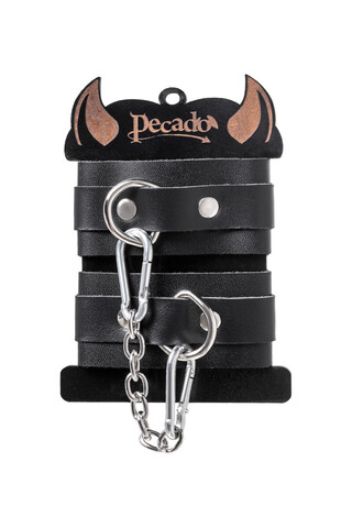 Ищите наручники для миниатюрной ручки? Тогда обратите внимание на эту модель от российского производителя Pecado. Они идеально созданы для обладательниц узкого запястья. Каждый элемент аксессуара изготовлен полностью вручную. Мягкий, чёрный материал нежно обхватывает руку и оставляет только приятные ощущения от контакта с телом. Аксессуар декорирован качественной фурнитурой, благодаря которой, при необходимости, его легко снять. Соединяются между собой с помощью короткой стальной цепочки и двух колец с карабинами. При правильном использовании не оставляют следов на теле. А особый аромат натуральной кожи придает пикантности сексуальному атрибуту. Подходит как для начинающих пар, так и для ценителей БДСМ-игр. Погрузитесь в мир пикантных удовольствий! Вместе с Pecado.