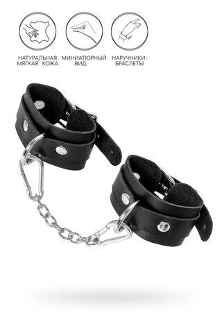 Наручники-браслеты Pecado BDSM, мини со скруглёнными углами, натуральная кожа, чёрные