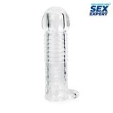 Закрытая насадка на пенис с кольцом для мошонки позволит увеличить размеры мужского полового органа. Небольшие пупырышки и рёбрышки на поверхности интимного аксессуара будут стимулировать эрогенные зоны.