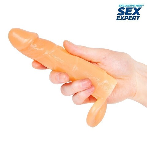 Удлиняющая насадка на пенис с кольцом для мошонки придется по вкусу любителям реалистичных «секс-игрушек». Ярко выраженная головка, «пульсирующие» венки, естественный оттенок делают интимный аксессуар максимально похожим на половой член. Насадка хорошо растягивается и легко надевается на пенис, увеличивая его длину на 8 см. Кольцо для мошонки надежно фиксирует изделие и продлевает эрекцию. Внутренняя длина изделия (длина пустой полости) составляет 12 см, внутренний диаметр – 3, 5 см. «Секс-игрушка» изготовлена из приятного на ощупь материала, который обеспечивает приятные ощущения. Насадка надеватся на половой член, находящийся в состоянии слабой эрекции. Непрерывное использование интимного аксессуара не должно превышать 15-20 мин. Рекомендуется использовать изделие совместно с лубрикантом для «секс-игрушек» «SEXTOYS» из серии «SEX EXPERT» и очищающий спрей «CLEARTOY».