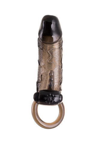 Насадка Toyfa XLover, для увеличения размера с кольцом и вибрацией, TPE, черная, 14.5 см