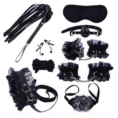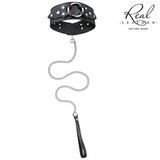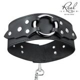 Брутальный ошейник с поводком для любителей разнообразных БДСМ-игр. Широкая поверхность делает его удобным в использовании. Металлическая застёжка позволяет регулировать размер интимного аксессуара.