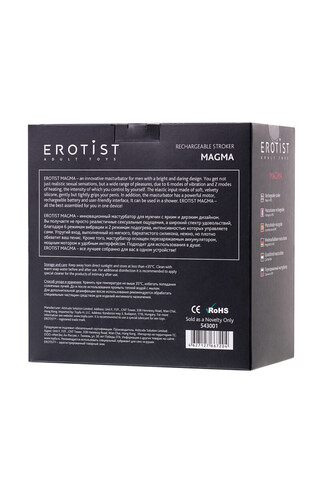 EROTIST MAGMA - инновационный мастурбатор для мужчин с ярким и дерзким дизайном. Отличительная особенность устройства – внутренняя поверхность не копирует женское влагалище, однако превосходит его по своим характеристикам. Вы получаете не просто реалистичные сексуальные ощущения, а широкий спектр удовольствий, благодаря 6 режимам вибрации и 2 режимам подогрева, интенсивностью которых управляете сами. Упругий вход, выполненный из мягкого, бархатистого силикона, нежно, но плотно обхватит головку пениса. Кроме того, мастурбатор оснащен перезаряжаемым аккумулятором, мощным мотором и удобным интерфейсом. Подходит для использования в душе.
