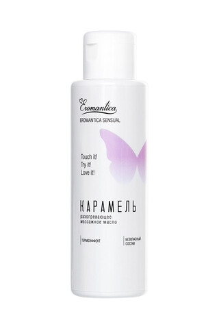 Коллекция температурных массажных масел Eromantica Sensual обнажает чувства и увеличивает градус желания. С ними каждое мгновение близости превращается в захватывающую игру. Разогревающее массажное масло Eromantica «Карамель» с ароматом сладостей усиливает возбуждение и позволяет получить больше удовольствия от близости. Его легкая текстура придает каждому движению рук возбуждающее шелковистое скольжение, а термоэффект повышает восприимчивость кожи к прикосновениям. Сладкий вкус без горького послевкусия делает оральные ласки еще приятней и побуждает к исследованию тела партнера. Встряхни и используй для: