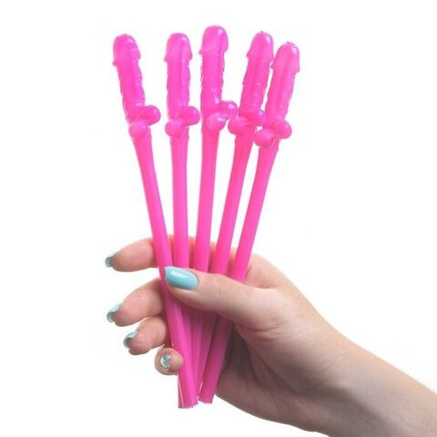 Коктейльные трубочки в виде пениса розовые - 5 шт.