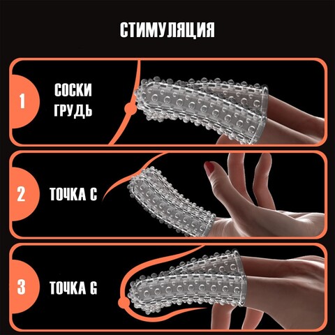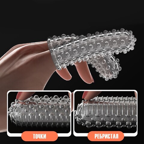 Стимулятор-насадка на палец для прелюдий Оки-Чпоки, гелевый силикон, двухсторонний рельеф, прозрачный, арт. 9922210