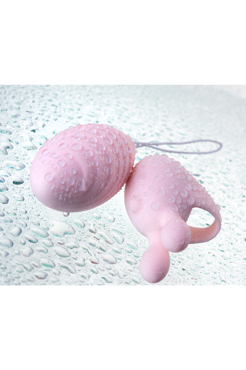 Виброяйцо и вибронасадка на палец-пульт JOS VITA, силикон, пудровые, 8,5 и 8 см